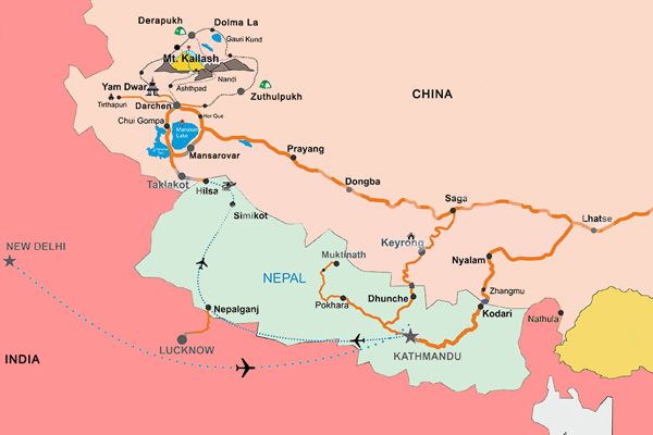 Routing: Kathmandu - Kyirong - Saga - Mansarovar - Kailash Kora / Parikrama - Kyirong - Kathmandu
